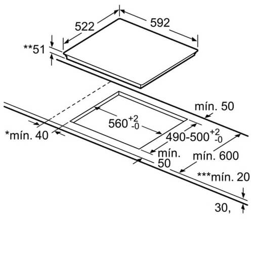 + Vùng nấu sau bên phải: 1 x Ø 145 mm, 1.4 KW (có thể tăng đến 2.2 KW)