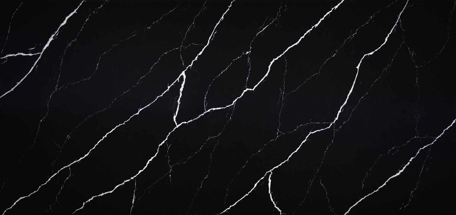 Sản phẩm đá Vicostone Nero Marquina nổi bật với những đường vân rạn, như những tia sét đánh mạnh mẽ trải dài toàn tấm. Các đường vân này càng trở nên nổi bật hơn với màu trắng tương phản hoàn toàn bề mặt mô gần như đen một cách tuyệt đối đầy huyền bí.